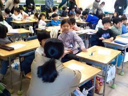 1年生は「ちいさなふとん」という話を読んで、自分の成長を感じるのはどんな時なのかを考えました。子どもたちからは「小さい頃はよく泣いていたけれど、今では人助けもできるようになった」などの発言もあり、一人一人が自分の成長を感じていました。