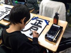 みなさん、半紙一枚に「正月」と時間をかけてていねいに書くことができました。
