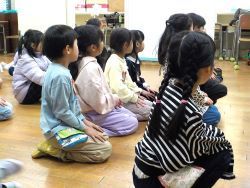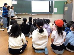 休み時間のチャイムが鳴ると子どもたちが集まってきました。