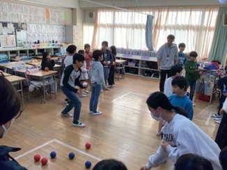 たてわり班あそび 2026年1月16日 第6回 たてわり班遊び 本日、6回目のたてわり班遊びでした。 今回のたてわり班活動で、6年生が中心になって遊びを計画するのも最後となりました。 「サバイバルしっぽとり」「全力玉入れ!」「リレー」「オオカミさん何時?」「ボッチャ」など みんなで仲良く遊んで楽しめる遊びばかりでした。 たてわり班遊び 担当